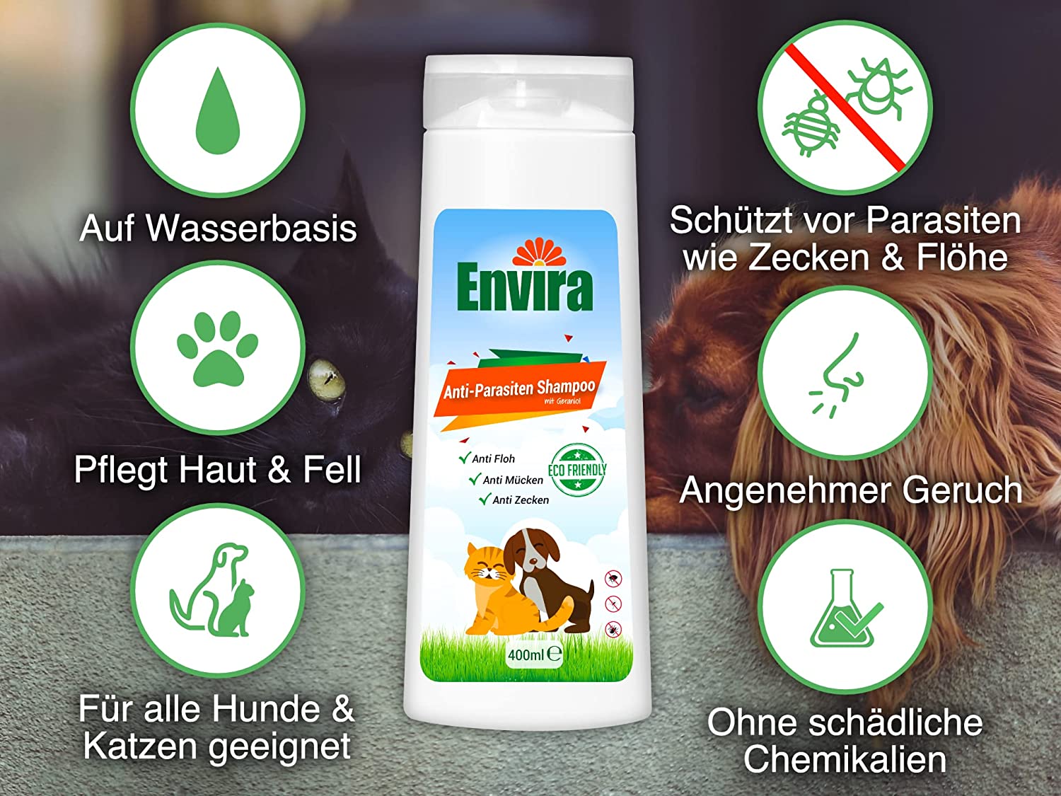 Envira Anti-Parasiten Shampoo wurde speziell für Hunde und Katzen entwickelt.